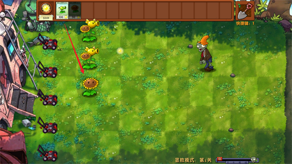 5、最后将樱桃炸弹种到豌豆射手上,增加输出火力即可过关。