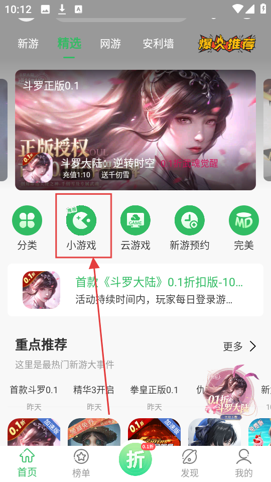 1、首页的【小游戏】功能快点击,想玩各类小游戏就从这里进入,超方便哦。