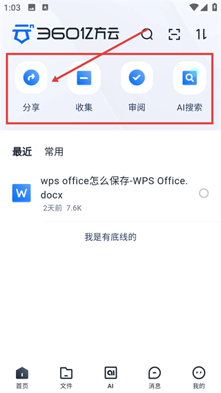 1、在360亿方云首页点击【分享】按钮,就能进入分享管理页面,开启文件分享的相关操作啦。