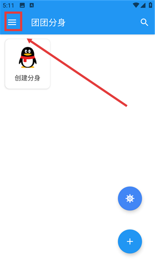 1、在【团团分身】主界面,点击左上角的菜单按钮,就能展开功能选项栏,找到【创建分身】的入口啦。