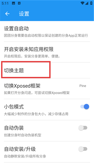 3、在设置界面里,找到【切换主题】选项并点击,就能更换应用的显示风格,让界面更符合自己的喜好呀。