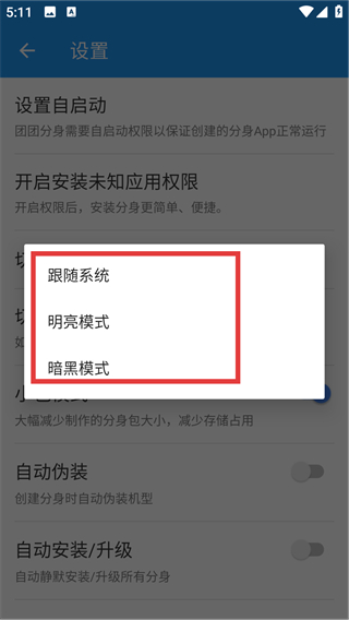 4、点击【切换主题】后会弹出选项框,可选择【跟随系统】【明亮模式】【暗黑模式】,选好后主题就会切换啦。