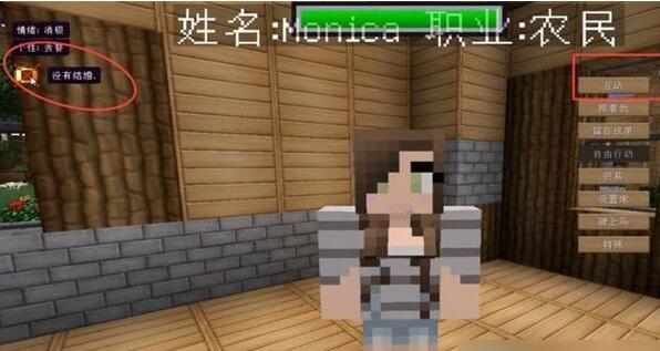 1、首先找到一个女性角色,观察她是否结婚,如下图所示没有结婚后,点击互动。
