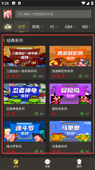 4、丰富作品:拥有丰富的游戏库,其中包括一些复古的老式游戏如街机、FC、GBA、MD等。玩家可以尽情畅玩这些经典游戏没有问题。