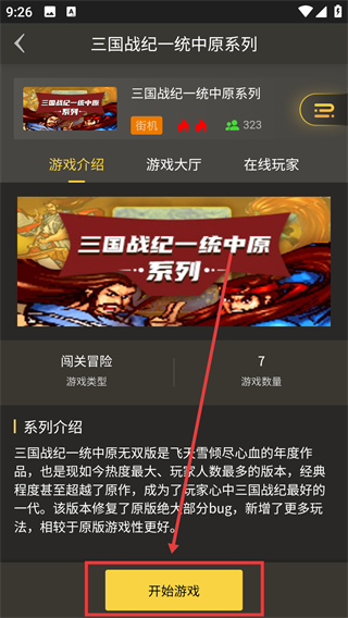 1、在游戏大厅页面选择喜欢的系列(比如【三国战纪一统中原系列】)并点击,就能进入该系列的详情页面啦。