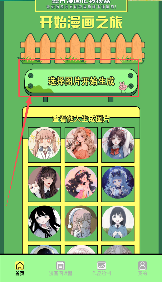 2、做漫画风格图片很简单,点“开始漫画之旅”,选一张你的照片,软件就会自动生成漫画效果,学习一下不同的风格嘛。