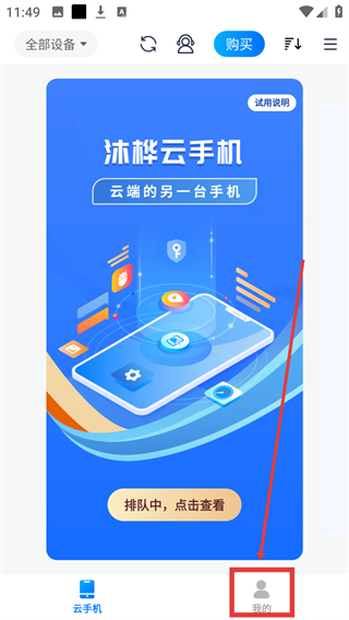 1、在【沐桦云手机】的云手机页点底部【我的】按钮,就能进入个人中心,查看各类功能选项啦。