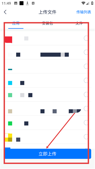 4、在上传文件页选好要传的内容后,点【立即上传】按钮,就能把文件传到云手机里啦。