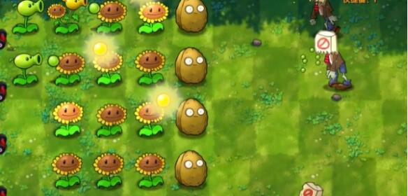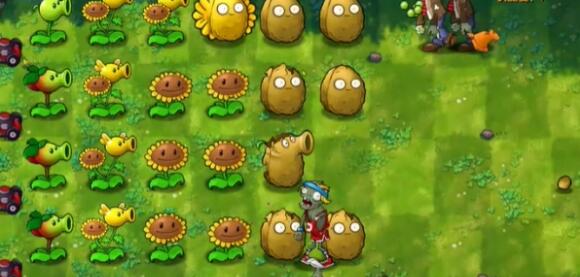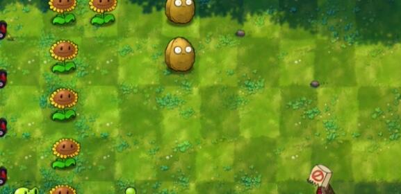 2、先在左侧种植一列向日葵,在右侧种植两个坚果。