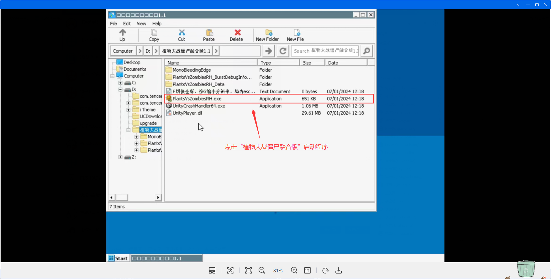 9、点击‘植物大战僵尸融合版’启动程序(游戏启动较慢,请耐心等待一段时间)