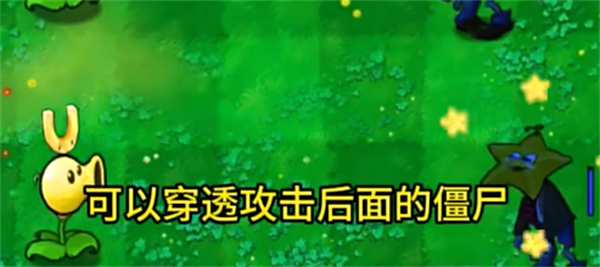 发射金豌豆,可以穿透,攻击到后面的僵尸。