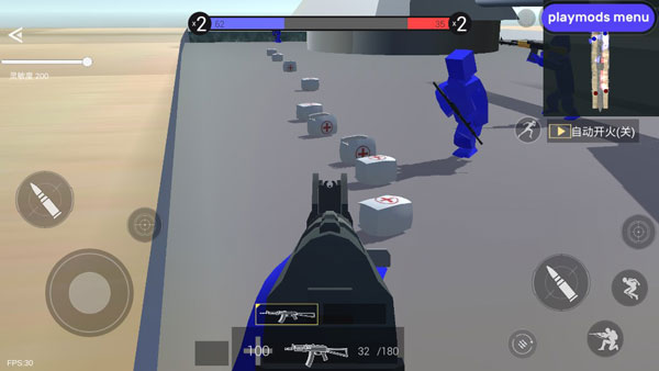 2、其实这是没有操作正确,我们只需要将医药包、弹药包放在地上,然后自己站在其上,这就装备上了,我们的血量以及子弹数量都会得到恢复了,而且还能进行无限使用,不过这中间是需要间隔的,不能一直用。