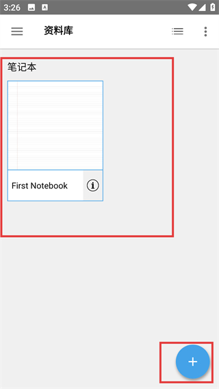 4、在资料库页面点右下角的【+】按钮,就能创建新的【First-Notebook】类笔记,拓展记录空间哦。
