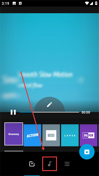 1、在视频编辑页面点击底部的音乐图标,就能打开音乐配置界面,为视频添加合适的背景音啦。