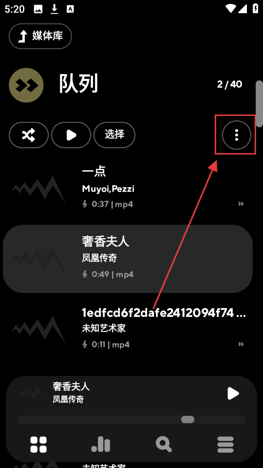 2、在队列页面,若想调整队列设置,点击右上角的【···】按钮,就能调出功能选项菜单。