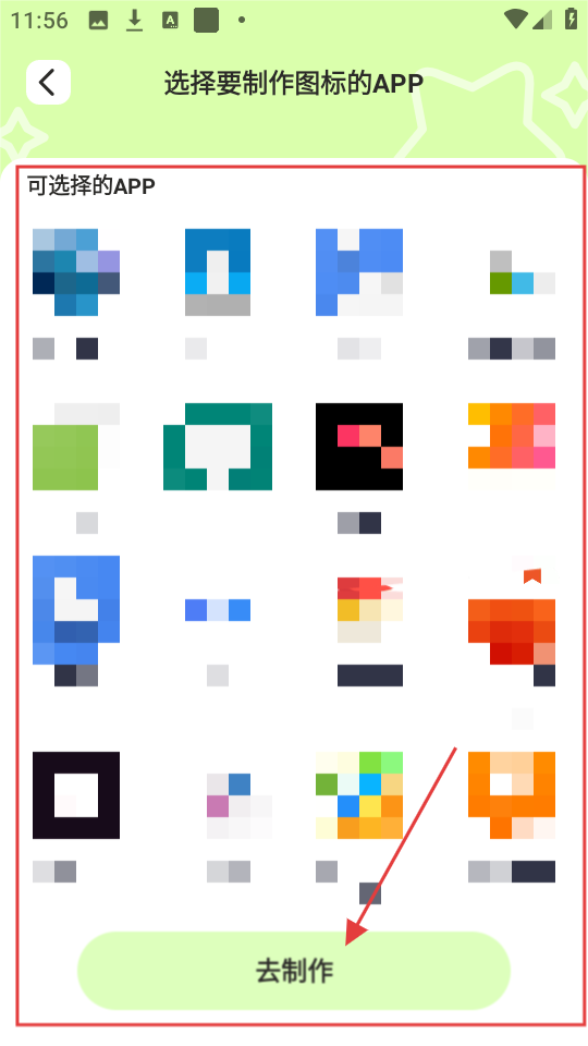 3、在选择APP页面,选择要制作图标的APP后,点击【去制作】,可进入图标制作页面啦。