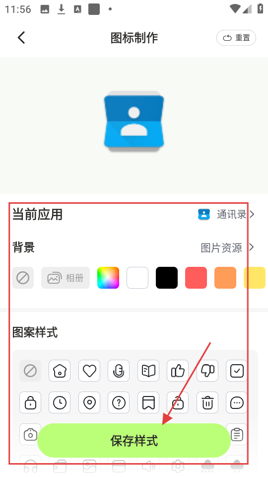 4、在图标制作页面,设置背景、图案样式等,点击【保存样式】,可保存制作的图标哦。