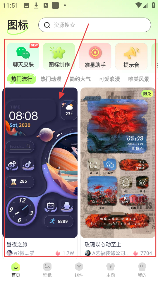 1、在首页可看到各类图标主题,挑选喜欢的点击进入详情页,还能制作专属图标哦。