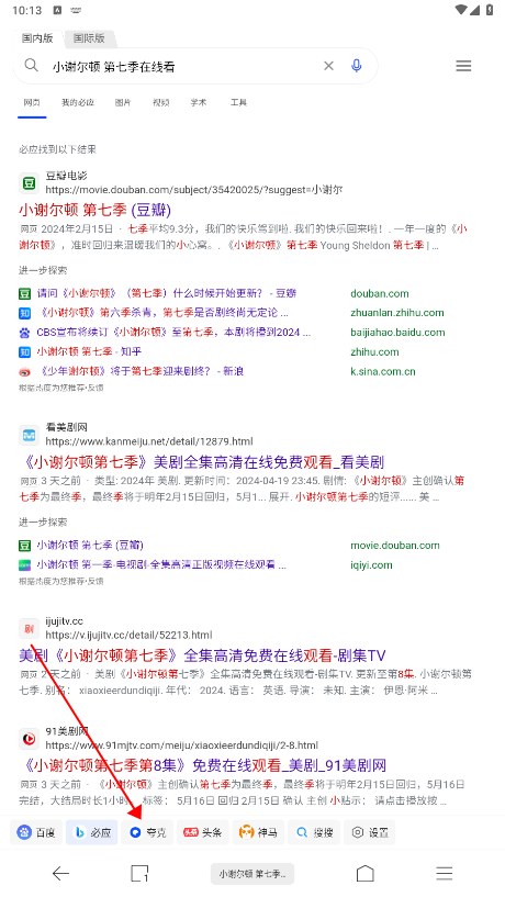 2、输入关键词进行查找,点击底部可以切换搜索引擎
