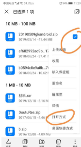 2、在下载管理界面中勾选压缩文件,然后点击打开方式选项。