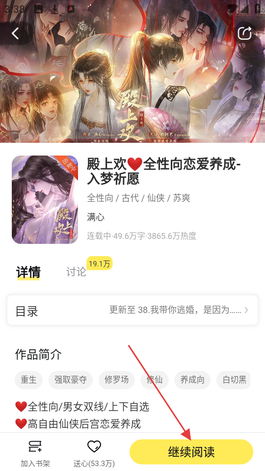 1、我们找到喜欢的书,点击【继续阅读】,就能进入该作品的阅读页面啦。