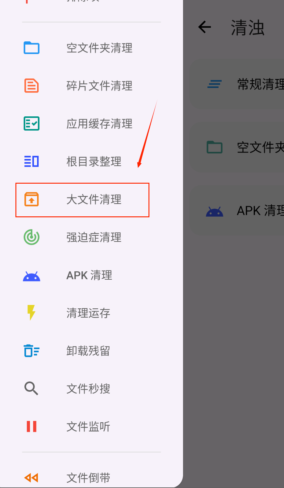 2、大文件清理功能需要谨慎使用,它能找出手机里占用空间最大的文件,清理前务必确认文件内容,避免删错重要资料。