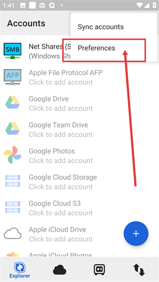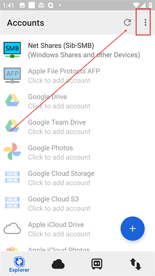 1、在【Accounts】界面,我点击右上角三点按钮,可展开功能操作菜单哦。