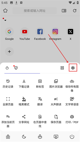 5、点击右下角的三条杠,可以对浏览器进行各种设置;