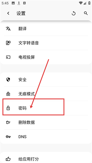 3、进入设置页后,选【密码】选项,可进入密码管理页面,配置密码相关的功能选项呢。