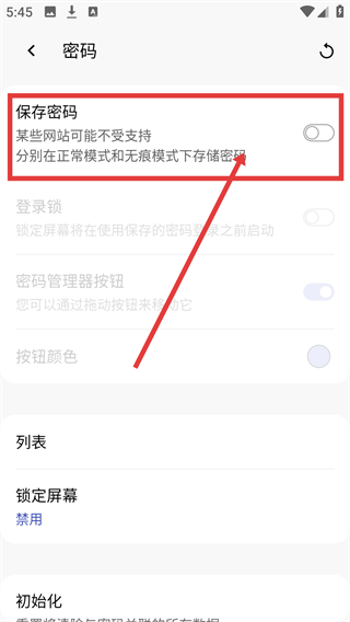 4、在密码管理页,可开启【保存密码】功能,让浏览器在不同模式下存储网站密码,方便后续登录哦。