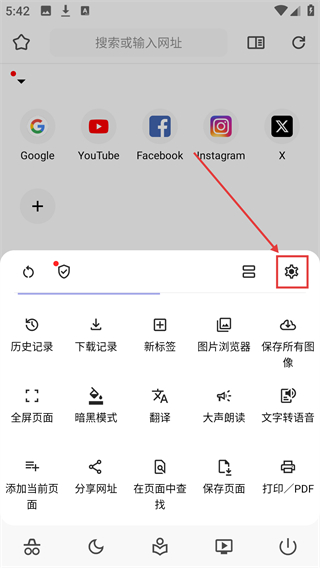4、点击导航栏左侧第一个更多图标,可以对浏览器进行各种设置