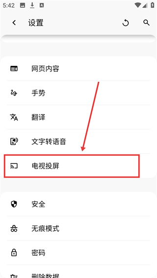 3、在设置页找到【电视投屏】选项并点击,就能进入投屏设置界面,配置投屏相关功能啦。