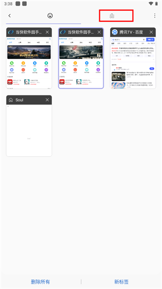 3、点击下图红色框框内的突变,可以切换至无痕浏览,并且可以查看打开的所有页面