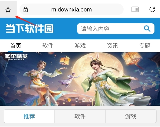 2、对于喜欢的网站可以点击下图的星星图标,可以将喜欢的网站快捷加入书签,以便用户下次直接进入页面