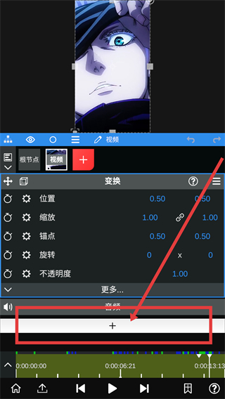 1、在视频编辑页点属性栏的【+】按钮,能打开添加属性的菜单,后续可给素材加特效啦。