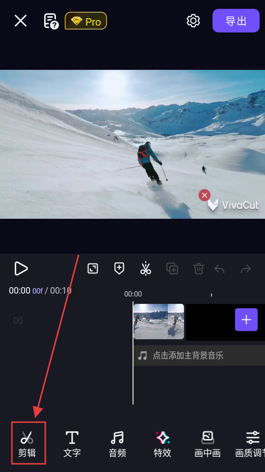 1、在视频编辑页面,点击【剪辑】,可进入剪辑功能页面,查看各类剪辑选项啦。