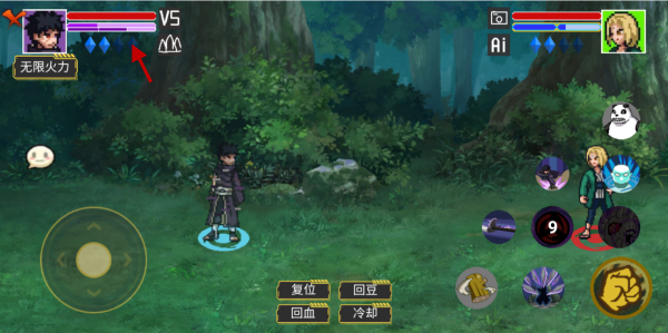 3、忍者的上面有一些技能,玩家可以在对战的时候使用,不过一定要要注意中间的时间,否则时间到了双方没有分出胜负,那么会根据剩余血量来判断胜负,血量高的玩家取胜。