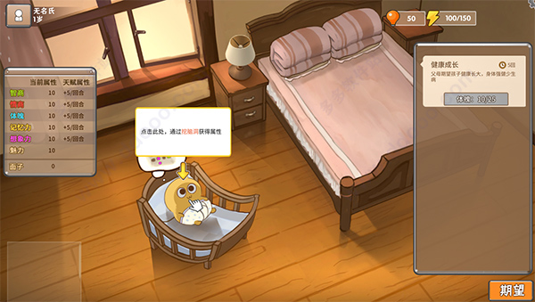 2、当你仅仅是躺在婴儿床的小baby,你的行程安排只能选择学习选项里的翻身,娱乐选项里的跟着音乐拍手。不同的选择会提高不同的属性,也会决定主角日后的命运。你成长至3岁时,已经可以学习美术钢琴课了,而且作为家长也解锁了新功能"面子"功能。