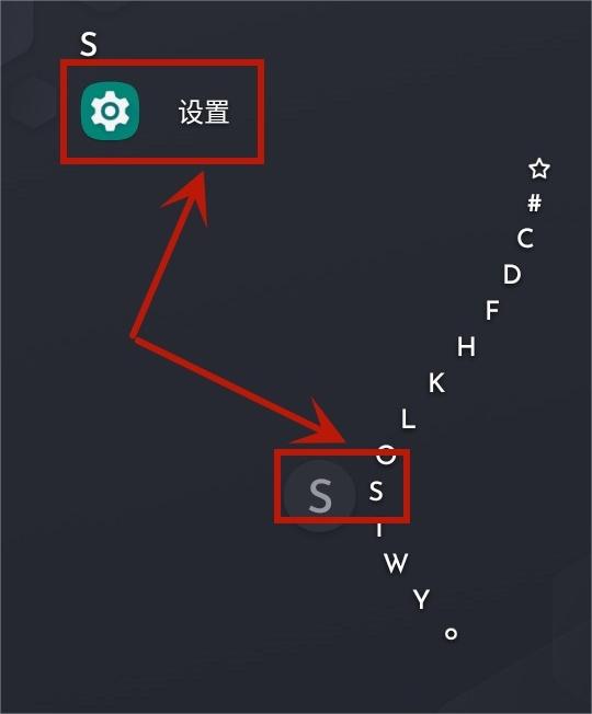 1、在niagara launcher页面滑动右边的字母,到s,选择设置