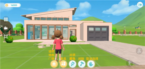 6、进入建造模式后,在屏幕下方有5个按键,点击每个按键都可挑选不同分类的搭建材料,还可通过改变材质和色彩来升级建筑外观。期待你们建造出个性建筑哦!