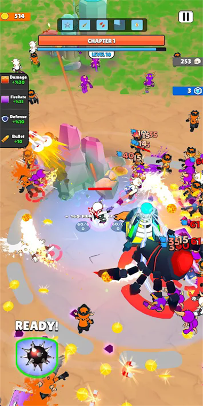 1、动作射击玩法:游戏结合了动作和射击元素,难度越来越大的关卡设计激发了玩家的挑战欲望和成就感,个性化的皮肤和装备系统。