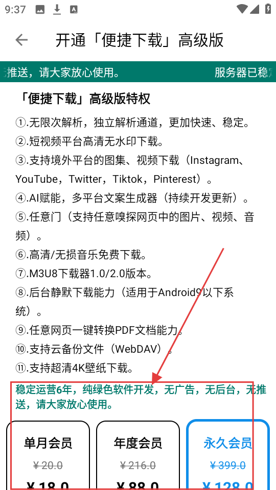 4、若想解锁更多高级下载特权,可查看【便捷下载】高级版的特权介绍,根据需求选择会员类型开通哦。