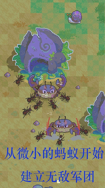1、各种危险任务:所有类型的蚂蚁都在你的指挥和调度之下,提高战斗力,游戏中随时可能出现各种危险。