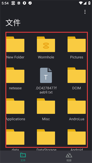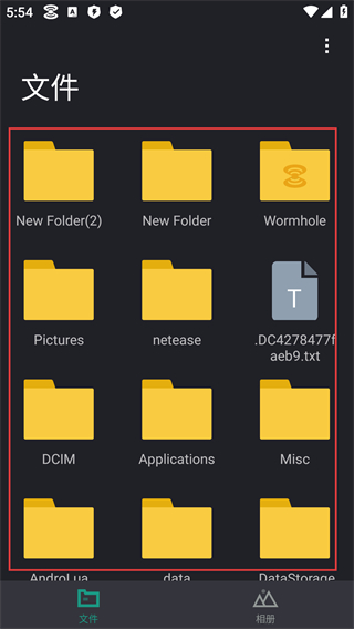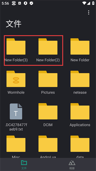 1、【文件】页面红框展示【New-Folder】【Wormhole】【Pictures】等文件夹及文本文件,可快速查找目标文件。