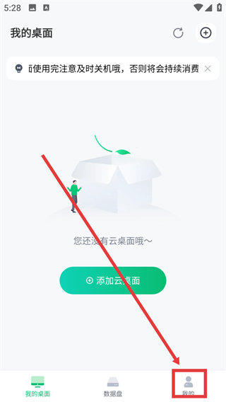 1、在【我的桌面】界面点击底部【我的】按钮,就能切换到个人中心页面,继续后续的账号相关操作哦。