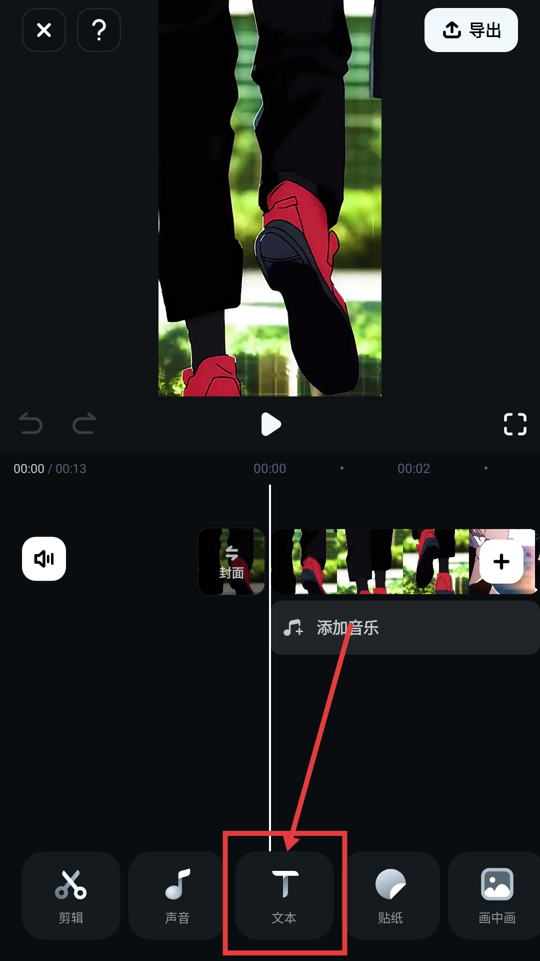 2、在视频编辑页,点【文本】功能,能打开文字相关的编辑选项啦。