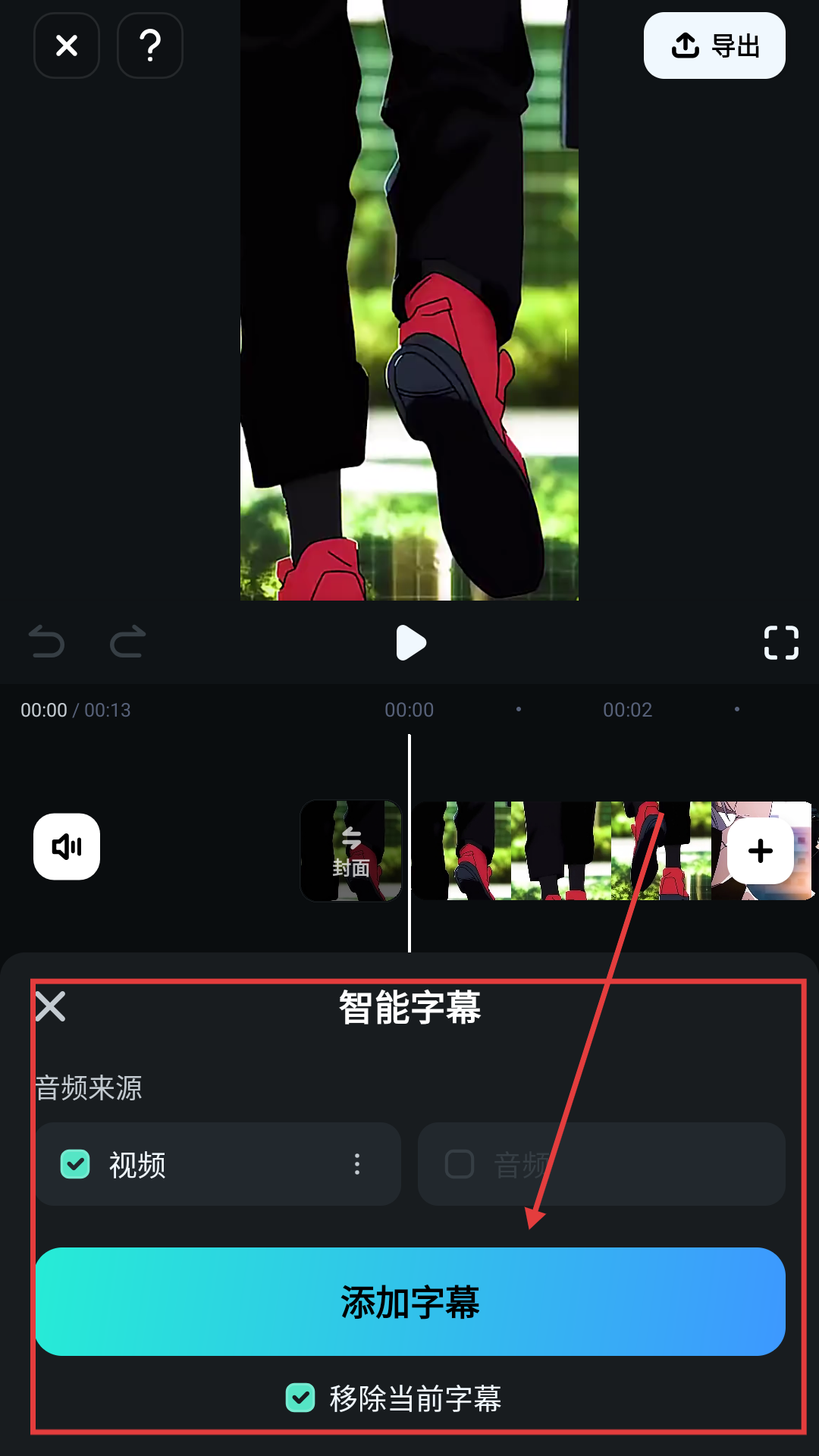 4、在智能字幕页,选音频来源后点【添加字幕】,即可给视频添加字幕哦。