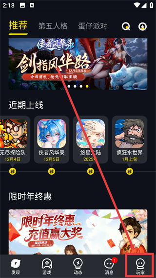 1、在应用首页点击底部的【玩家】选项,就能进入个人功能页面,查看各类游戏相关的服务与功能啦。
