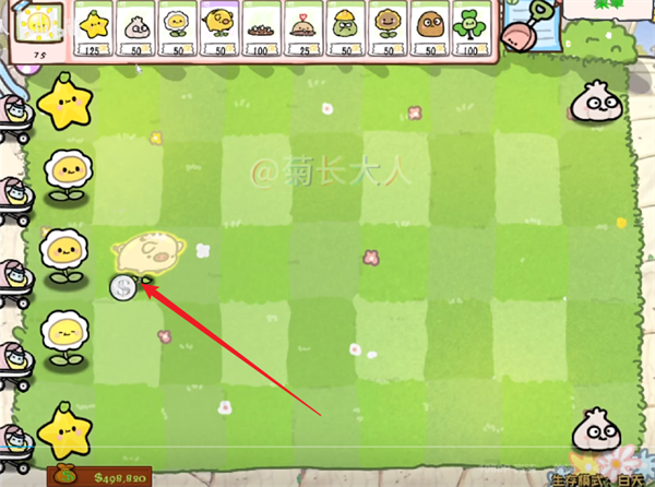 2、消耗50阳光就可以将金猪存钱草种植在场景的格子上面。
