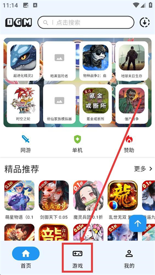 1、在首页点击底部【游戏】按钮,就能进入游戏分类页面,查看各类游戏资源的列表啦。